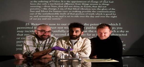 Ashley Gallant curator of the Ruskin Collection, Jake Goodall Senior Lecturer in Graphic Design at Sheffield Hallam University and Dr Tom Payne senior lecturer in performance at Sheffield Hallam University are pictured looking at a Rain Gauge and Sunshine Recorder Card Picture taken by Yorkshire Post Photographer Simon Hulme